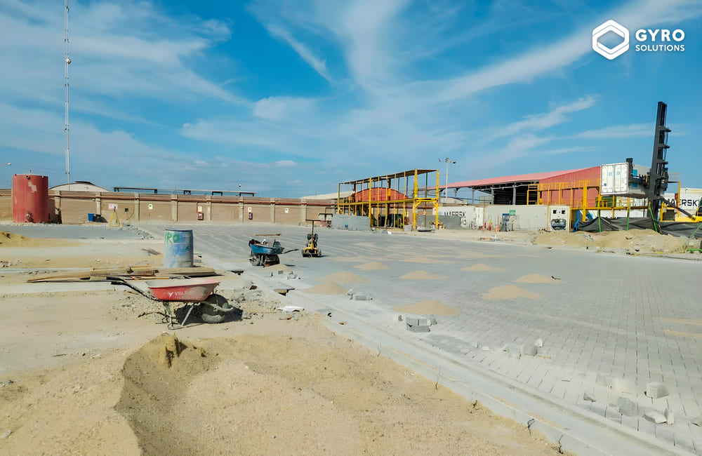 Construcción de pavimento y zona de lavado de 3,000 m² en patio de contenedores con tránsito portuario, además de la instalación de un sistema de drenaje.